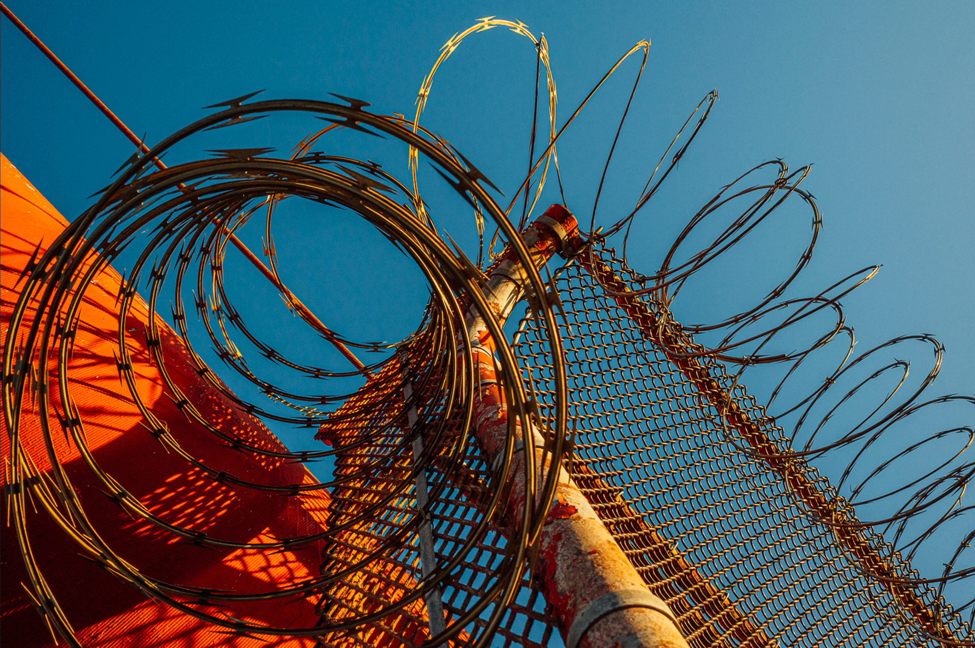 I also sensed its life. I felt the last rays of warmth from an autumn sun on the spiraling razor wire and the cool blue sky above. I stood in awe watching a distant refinery flaring off toxic gray smoke over the San Francisco Bay at sunset. I traced my fingers over a heart etched into the cold orange railing and read out the word beside it: “BYE”.