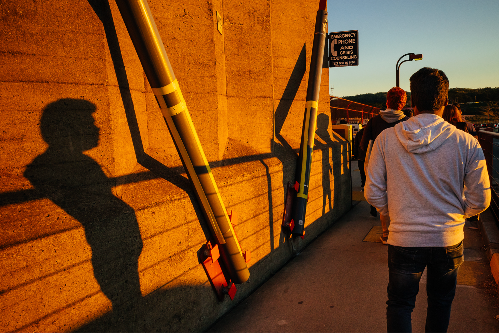 “Life from the Bridge” is an effort to find a silver lining within the dark history of the Golden Gate Bridge. My inspiration began well over a decade ago with a viewing of the controversial documentary “The Bridge” (2006), in which a series of suicides are graphically depicted from the perspective of a camera zoomed in safely on land. When I finally did get to visit the Golden Gate Bridge many years later I got goosebumps, not from the chill or the fog, but from knowing every step I took held a silent and potentially deadly past.